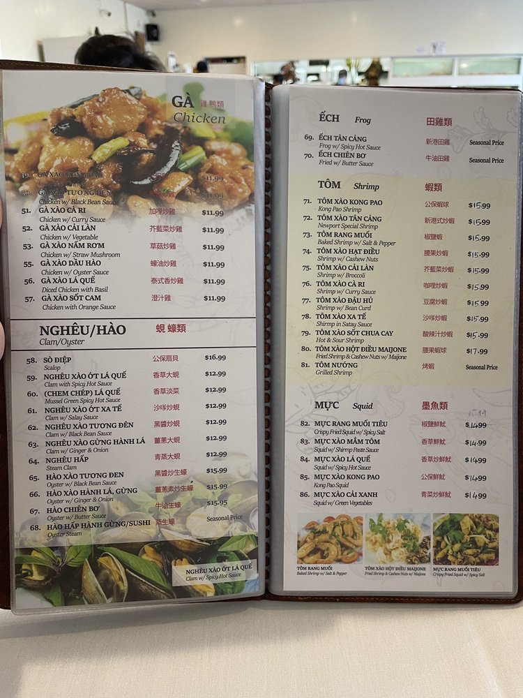 Located in Garden Grove, CA, Tan Cang Newport Seafood Restaurant specializes in Chinese seafood cuisine. With features like validated parking, outdoor seating, and a variety of vegetarian options, this restaurant offers a casual dining experience suitable for groups, kids, and even dogs. The menu boasts dishes like lobsters, noodles, shaking beef, and salt & pepper squid, all highly praised by customers for their fresh flavors and quality. The signature lobster dish stands out for its perfectly cooked and juicy meat, while the noodles are said to complement it excellently. The attentive service and friendly staff further enhance the dining experience, making Tan Cang Newport Seafood a must-visit for seafood lovers looking for authentic Chinese flavors.